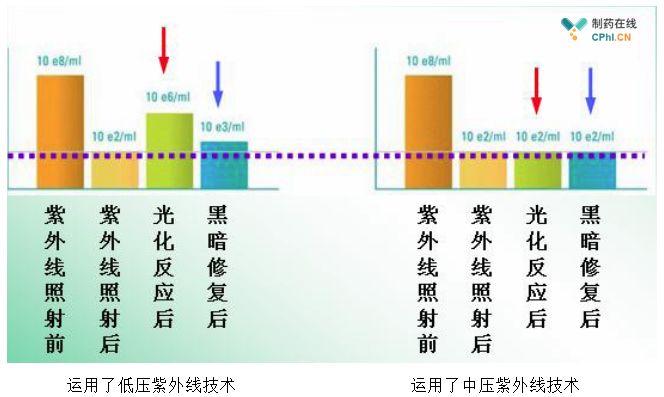 經(jīng)低壓和中壓紫外線照射后微生物的光復(fù)活的對照試驗